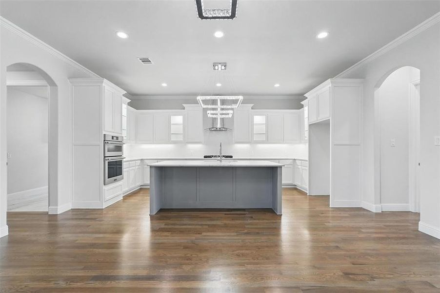 - DishwasherMicrowave OvenOvenDisposalElectric CooktopGas CooktopGranite countertopKitchen IslandGas OvenElectric Oven