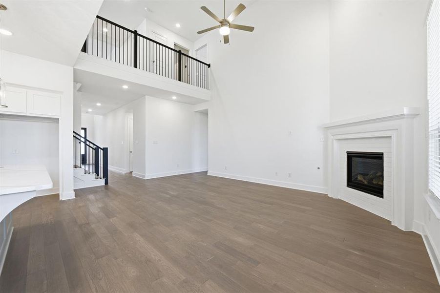 The Richmond is an elegant two-story floor plan that offers a perfect blend of comfort and style. The first floor features an open-concept kitchen with a breakfast area that flows into a spacious living room, leading to a cozy patio for outdoor relaxation. The primary suite provides a luxurious retreat with an ensuite bathroom, while bedroom two is conveniently located near a full bathroom. It also has a dedicated dining room, and a 2-car garage which offers ample storage. Upstairs, you'll find a versatile loft area, perfect for additional living space, along with bedrooms three and four, which share access to a full bathroom. The open-to-below design enhances the sense of space and connection throughout the home. Optional upgrades included: - Bay in primary bedroom - Study ilo dining - Fireplace in family room - Extended outdoor living
