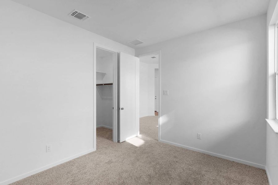 Retreat to the primary suite featuring tray ceilings, French doors opening to the spa-like ensuite with dual vanities, a walk-in shower, linen storage, and a generous walk-in closet. Both secondary bedrooms also feature walk-in closets, offering comfort and function for everyone.