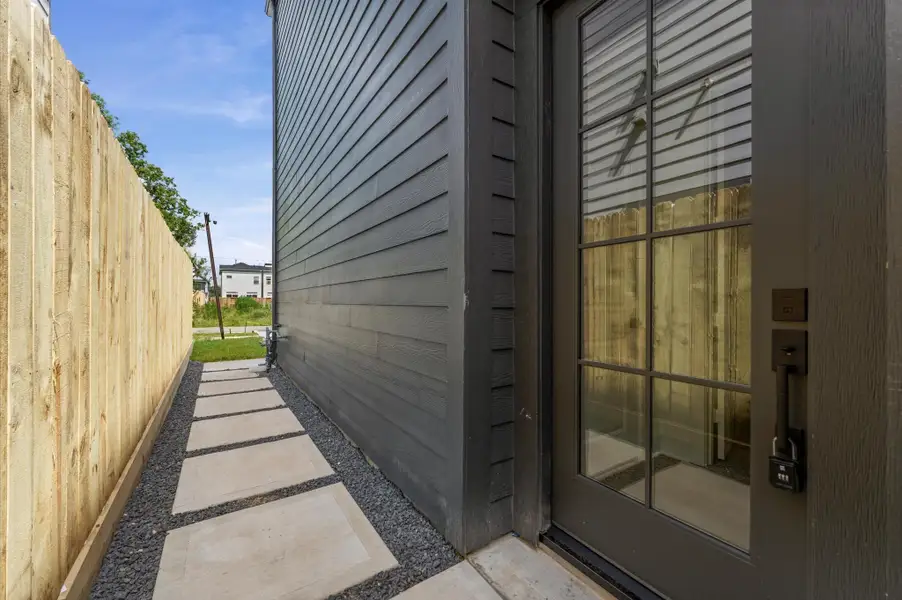 Only 1 left! This 2 story home in the Medical Center @ OST features open-concept first floor living with a unique floor plan that includes a guest suite. This suite has a full walk-in shower and a separate entry, making it ideal for in-laws, stair-challenged guests or Airbnb. This residence offers 4 bed/3 bath with contemporary interior design and modern finishes. Open kitchen boasts quartz countertops, mosaic tile backsplash, stainless-steel appliances and LVT flooring. Spacious primary bedroom has 20-foot cathedral ceilings, large covered balcony, walk-in closet and abundant natural light. Spa-like ensuite bath includes walk-in shower, dual vanities and soaking tub. Flex room and private driveways. Location is convenient, less than 1 mile from the new 52-acre Hines Development, Levit Green, which offers dining, shopping and outdoor spaces. Less than 2 miles from the new TMC3 Med Center development. Plans for over 255 homes to be built in this area. Strong rental market and no HOA!