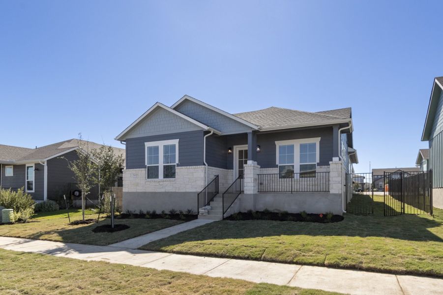 Welcome to 7505 Boyd Haven Drive, a beautifully designed 2,411 sq ft single-story home in the heart of Easton Park that delivers space, light, and effortless livability. This 4-bedroom, 2.5-bath residence also features a dedicated office and flexible bonus space, making it ideal for modern living. Soaring ceilings and windows along both sides of the home flood the open-concept layout with natural light, while the expansive living area serves as the true centerpiece of the home. Large sliding glass doors create a seamless indoor-outdoor connection, opening to a massive covered patio that’s perfect for entertaining or unwinding. The chef’s kitchen boasts built-in appliances, a large island open to the living room, and thoughtful finishes throughout. The oversized primary suite is privately situated away from the secondary bedrooms and offers a luxurious retreat with spa-inspired bathrooms featuring tile to the ceiling. Two large side yards add rare outdoor flexibility, while generous secondary bedrooms provide space for guests or everyday comfort. Located just 15 minutes from downtown Austin, Easton Park offers an exceptional lifestyle with parks, trails, and vibrant community amenities—this home is the perfect blend of style, function, and Austin living.