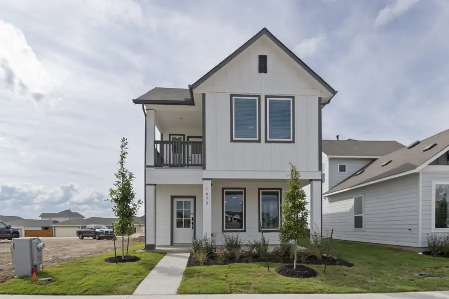 Welcome to 1632 Esplanade Parkway, a charming two-story cottage-style home located in the highly sought-after Trace community of San Marcos, offering timeless curb appeal with elegant white and grey exterior accents and a large covered front porch that welcomes you home. Step inside to a very open and spacious first-floor layout where the living room, dining area, and kitchen flow seamlessly together, filled with an abundance of natural light and designed for both everyday living and entertaining. The kitchen features quartz countertops, a luxury tiled backsplash, and quartz surfaces throughout the home for a clean, modern finish. Upstairs, the large primary suite serves as a private retreat with a walk-in closet, double vanity, tile-to-ceiling shower, and access to a beautiful tiled covered balcony, perfect for enjoying sunrise views or unwinding in the evening. Two additional bedrooms provide flexible space for guests, a home office, or additional living needs. Additional highlights include an alley-loaded garage, thoughtful modern finishes throughout, and a prime location within walking distance to the community amenity center, making this move-in-ready home a perfect blend of comfort, style, and convenience.