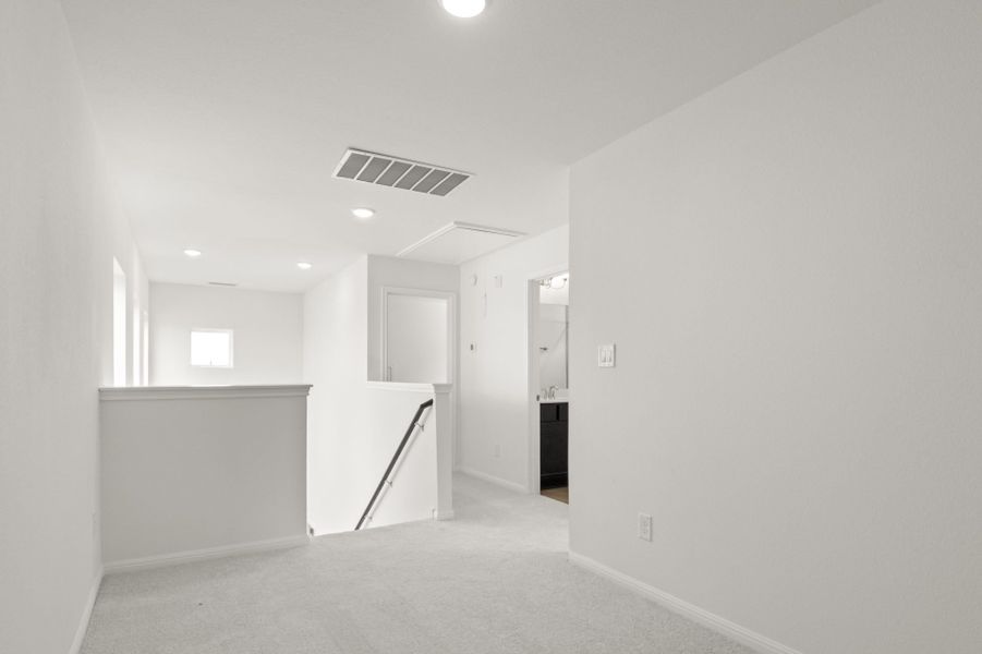 Step inside this stunning 3-bedroom, 2.5-bath home with an upstairs loft offering over 1,700 square feet of modern living space filled with an abundance of natural light and so many windows that create a bright, open feel throughout. The thoughtfully designed floor plan features the primary bedroom downstairs with a large spa-like bathroom including a double vanity, floor-to-ceiling tile, and a huge walk-in closet, while guest bedrooms upstairs are complemented by a spacious loft ideal for flexible living. The kitchen showcases quartz countertops, a modern luxury tile backsplash, and a full appliance package, with quartz surfaces continuing throughout the home for a cohesive, upscale look. Additional highlights include soaring ceilings, blinds throughout, full irrigation, gutters, an alley-loaded detached garage, and a covered back patio perfect for relaxing or entertaining. Located just steps from the community amenity center in the highly desirable Trace community of San Marcos, this move-in-ready home offers exceptional value, modern finishes, and a prime location close to everything you need.