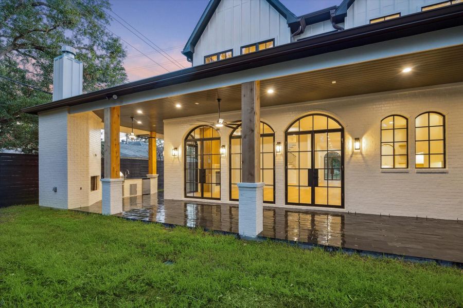 Prepare to be captivated by the opulent ambiance that permeates every inch of this architectural masterpiece. The expansive foyer with its soaring 20' ceiling creates a sense of grand welcome, leading you seamlessly into the heart of the home. Indulge your culinary passions in the gourmet kitchen, where the centerpiece is an exquisite waterfall island. Crafted with meticulous attention to detail, this culinary haven is adorned with top-of-the-line appliances and high-end finishes. The open concept layout provides a seamless flow for entertaining, ensuring every event is flawlessly executed. The elegant formal dining sets the stage for lavish gatherings. Upstairs, retreat to the opulent master suite, complete with spa-like bath and spacious walk-in closet. Find ample bedrooms and a versatile game room. Experience outdoor living the way it was made to be enjoyed replete with outdoor fireplace and kitchen. Find unparalleled beauty on an oversized lot with serene views of tree-filled park.