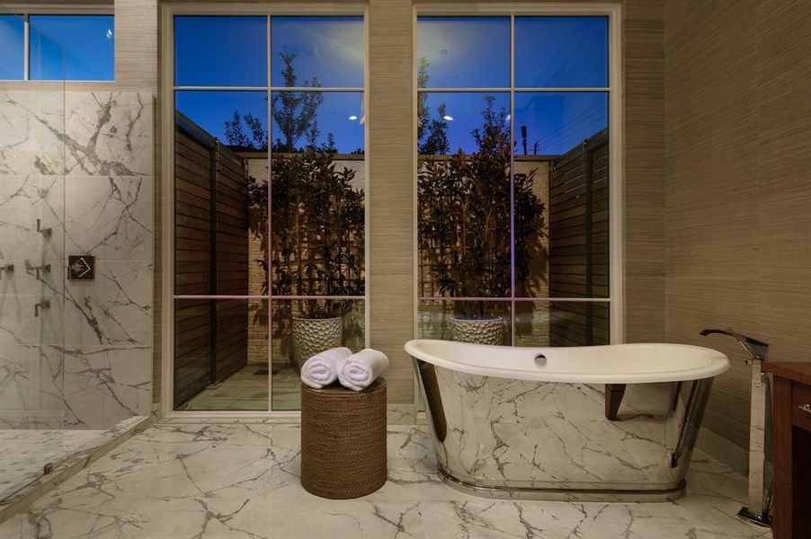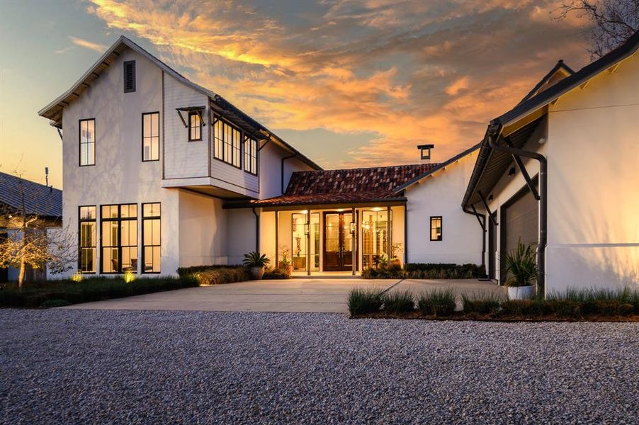This remarkable newly built home on the estate sized block of Melshire Estates of Preston Hollow offers a rare opportunity to own the epitome of an architecturally significant, high-quality custom build without the brain damage, time & incremental cost to one new owner. Drawing from the colonial homes of Sri Lanka, India, & Singapore —filtered through the lens of celebrated architects like Geoffrey Bawa and Ed Tuttle—this home balances global influence with modern amenities. Rather than presenting a single structure, the home forms a village of asymmetrical structures around a private courtyard, evoking the organic character of historic harbor towns where buildings evolved over time into intimate architectural compounds. AIA architects Tommy Upchurch, Todd Hamilton, and D'Jelma C. Perkinson, Scott Marek, with interiors by Shawna Kuykendall, worked together to create this stunning home. The approach begins with a collection of lighted Cypress trees, providing privacy and beauty, the first introduction to a thoughtfully executed landscape design by Christa McAll from Paper Kites. At heart of the home is a dramatic cathedral pavilion where the commercially equipped kitchen, informal dining & living area come together beneath vaulted trusses. Broad walls of glass open to patios & courtyards within a walled & fenced cocoon, creating a seamless indoor-outdoor connection with ultimate privacy. The owner’s suite offers a spa-like escape featuring Santos Rosewood cabinetry, backlit Opal stone vanity, a soaking tub overlooking a private courtyard, and separate walk-in closets. The second level includes three of four additional bedroom suites with terrazzo baths, a yoga & exercise room, & a spacious informal living or game room that opens to front & rear balconies overlooking the courtyard below. Inspired by centuries of global architecture yet designed for modern living, this extraordinary residence offers a rare combination of craftsmanship, history, & contemporary luxury.