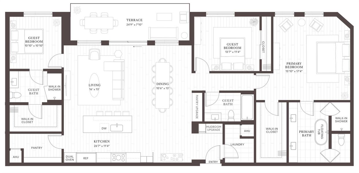 Ask our sales team about our, 'Home For The Holidays' promotion*Leland, where modern mid-rise living merges seamlessly with the vibrant culture of Austin’s coveted 78704 neighborhood. This exclusive residence offers an unmatched lifestyle, with 23,000 sq ft of premium retail space, including two signature restaurants right on South Congress Avenue. Step into the Michael Hsu designed residential lobby, where elegance and convenience await. The 24/7 concierge service ensures all your needs are met, while amenities like a mail room, lounge area, conference room, dry cleaning drop-off, cold storage, and a spacious package room elevate your living experience. On the second level, discover the Rejuvenation Floor, a lush .23-acre garden oasis designed by Nudge Design. This outdoor haven features vibrant landscaping, two gas grills, fire pits, a serene water feature, and multiple seating areas perfect for relaxation or socializing. Inside, wellness is a priority with a state-of-the-art gym, two-story ceilings, a meditation room, treatment rooms, and an infrared sauna. Ascend to the third floor, where the Great Room awaits. This space includes a resident bar, clubroom, private dining room, library, conference rooms, and a chef’s kitchen. Step outside to the resort-style pool, where you can enjoy stunning views of downtown Austin. Your Penthouse residence spans 2,114 sq ft and offers 3 bedrooms, 3 bathrooms, and soaring 11-foot ceilings that create an airy, expansive atmosphere. The open-concept kitchen, equipped with premium Thermador appliances, flows effortlessly into the living area and the spacious 165 sq ft terrace, perfect for outdoor entertaining or relaxation. Each bedroom is designed for comfort, and the primary suite is a true retreat, featuring a huge walk-in closets and a spa-like bathroom with a luxurious soaking tub and separate shower. Don’t miss your opportunity to call Leland home and enjoy everything this iconic community has to offer