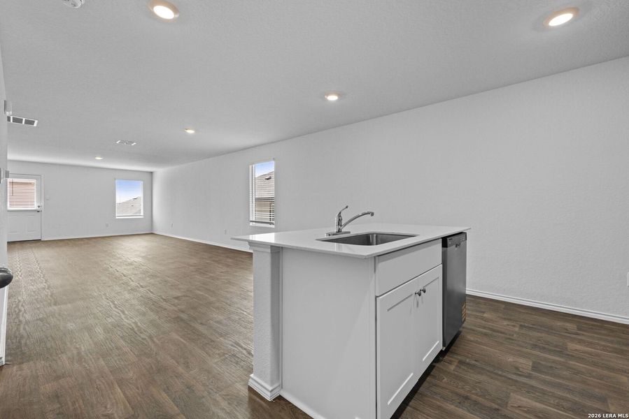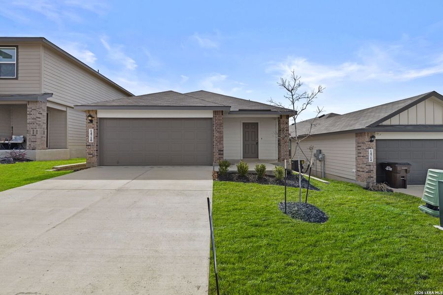 The Caprock is a charming one-story home featured at Stonehill on the far west side of San Antonio, TX. Featuring 3 bedrooms, 2 bathrooms, 1435 square feet of living space and a 2-car garage. A front porch welcomes you into the home and opens to the gourmet kitchen which includes quartz counter tops, quality cabinets, stainless steel appliances and an open concept floorplan with the kitchen flowing seamlessly into the dining room and living room. The primary bedroom is located at the back of the home. Unwind at the end of your day in this private ensuite. The attached bathroom includes a walk-in shower, cultured marble vanity with trench sink and a walk-in closet. The secondary bedrooms and bathroom are located off the kitchen. The bedrooms include carpet and closets with wood shelving. The secondary bathroom has a shower/tub combination and a cultured marble vanity with trench sink. Seller is willing to assist with closing costs or a rate buy-down through preferred lender with an acceptable offer.