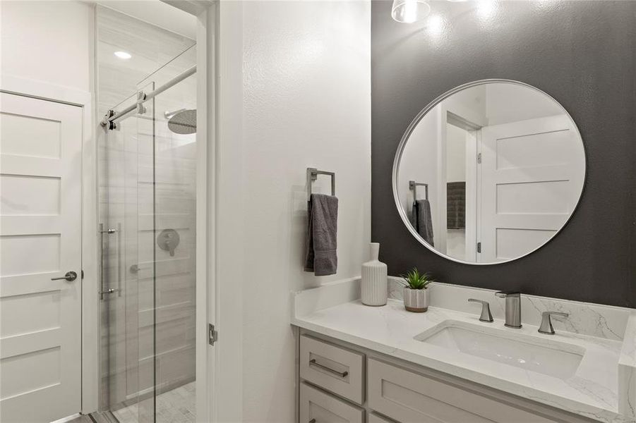 Enjoy a designer kitchen with gas cooktop, custom cabinets, gas tankless water heater, and a walk-in pantry. The master suite is a serene escape with spa-style luxury,