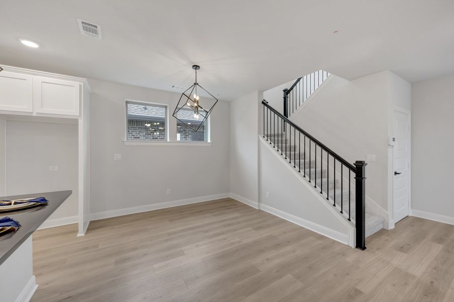 Step inside to an open, light-filled floor plan featuring soaring ceilings and elegant finishes. The upgraded kitchen is a chef’s dream, boasting quartz countertops, stainless steel appliances, custom cabinetry, and a large island that’s perfect for family gatherings or casual entertaining.