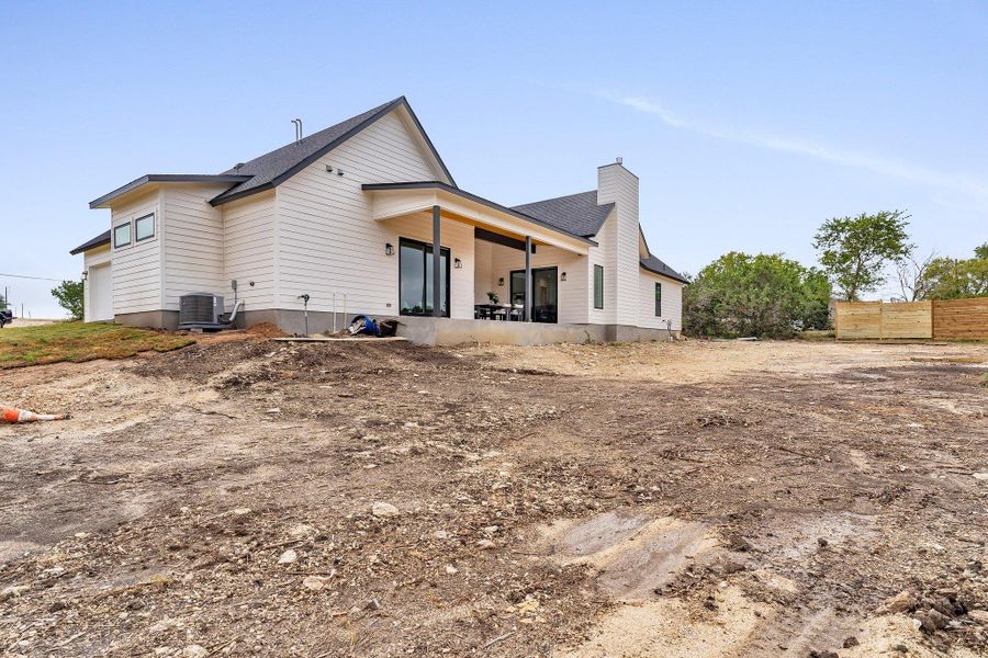 Experience modern Hill Country living on nearly 3 acres in Georgetown! This newly built 5-bedroom, 4-bath home offers a perfect mix of style, space, and function—surrounded by mature trees, a seasonal creek, and wide-open skies. With 2,535 sq ft, the open-concept design features tall ceilings with wood beams, large windows that let in tons of natural light, and a warm fireplace as the living room focal point.