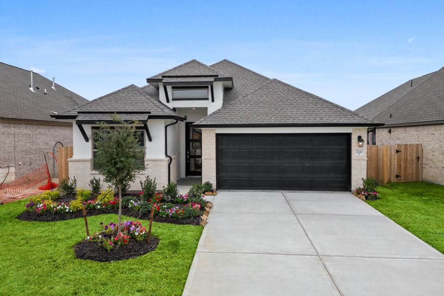 Step into this beautifully crafted single-story home in The Meadows at Imperial Oaks, where modern curb appeal meets thoughtful design. Showcasing a stylish brick and stucco board exterior, this residence features 4 spacious bedrooms and 3 well-appointed bathrooms. The chef-inspired kitchen comes equipped with stainless steel appliances, 42-inch cabinetry, gleaming quartz countertops, and a generous island that flows seamlessly into the family and casual dining areas. Durable and elegant luxury vinyl plank flooring adds warmth and character throughout the main living spaces. Unwind in the serene primary suite, highlighted by a charming, bowed window, soaking tub, and separate shower. Outside, a Texas-sized covered patio provides the perfect setting for entertaining or relaxing. Schedule your tour today!