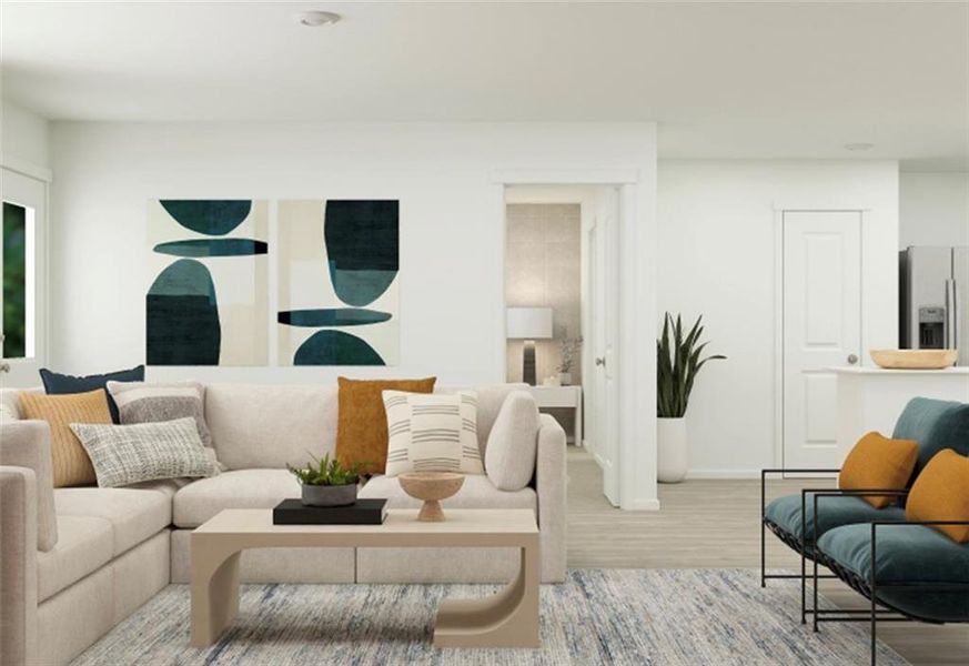 This new single-story design makes smart use of the space available. At the front are all three secondary bedrooms arranged near a convenient full-sized bathroom. Down the foyer is a modern layout connecting a peninsula-style kitchen made for inspired meals, an intimate dining area and a living room ideal for gatherings. Tucked in a quiet corner is the owner’s suite with an attached bathroom and walk-in closet.