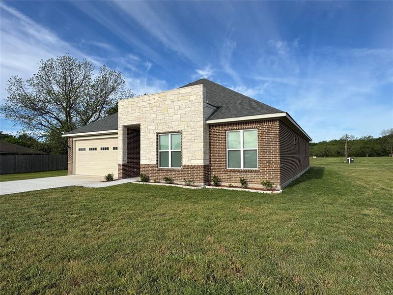 Check out this gorgeous custom new build with plenty of space. This stunning one-story home offers 2,170 sq. ft. of living space and over 2,700 sq. ft. total. With 4 bedrooms and 2.5 bathrooms, it perfectly blends style and function. Enjoy soaring 12-foot ceilings in the main living area and 10-foot ceilings throughout the rest of the home. The open-concept living, kitchen, and dining area features a gas fireplace, a large island with seating, and beautiful outdoor views. The stylish kitchen includes custom cabinetry, quartz countertops, a stunning backsplash, and a walk-in pantry. Extras include a laundry room with cabinetry, a massive garage, and charming brick-and-stone exterior. Outdoor living is a breeze with a covered front porch and a spacious covered back patio, ideal for relaxing or entertaining. Don’t miss out—schedule your appointment today!