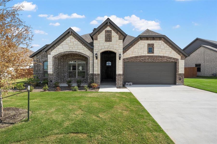 MLS# 20951162 - Built by J Houston Homes - Ready Now! ~ NEW JOHN HOUSTON HOME IN STONERIDGE IN MIDWAY ISD. The exterior has a gorgeous brick & stone combination with a front-facing two car garage. Inside, structural options include 4 bedrooms and 2.5 baths along with a spacious master suite with a bay window. The family room has 4 large windows looking over the back patio, which is a great entertaining space. The open concept kitchen-breakfast nook-family room and a large, oversized island also allows for easy entertaining. The family room has a 36-inch gas starter fireplace, and the kitchen also provides a gas cooktop. Main living areas have LVP floors with great durability for pets. The rest of the home has upgraded tile and carpet. READY JUNE 2025!