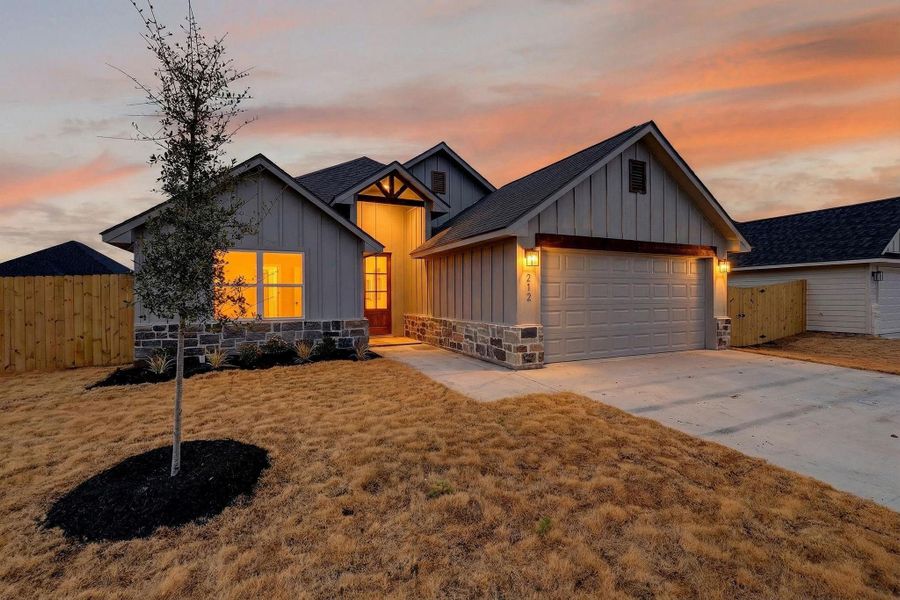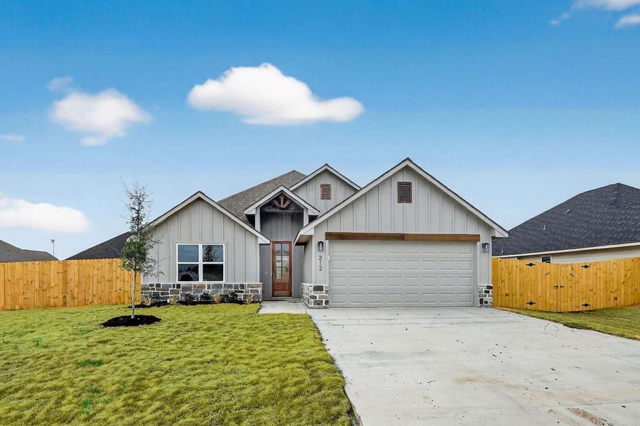 Grand Lake is located in the Heart of Snook, Texas just 10 miles from Kyle Field. Experience custom craftsmanship both inside and out and located on a small cul-de-sac street. This home boasts tall ceilings, and a bright and open floor plan seamlessly connecting the kitchen and dining to the large living room leading to the backyard. This beautiful one-story home features a gorgeous kitchen with plenty of storage and custom cabinetry and vinyl wood flooring. The master bedroom features a spacious ensuite with dual sinks, a shower, a garden tub, and a large walk-in closet that conveniently connects to the utility room. . This home also features: Sprinkler system front and back yard, granite in the kitchen and bathrooms, vinyl wood flooring in the living, kitchen & dining, carpet in bedrooms, tile in baths and utility room, low e windows, recessed lighting throughout, and stainless steel finished appliances. Grand Lake HOA includes high-speed fiber-optic internet.