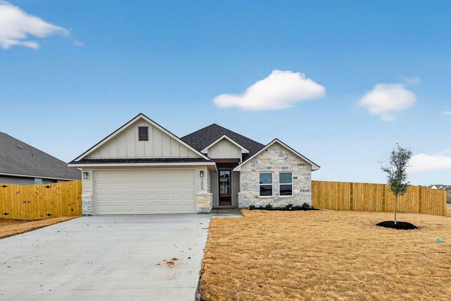 Grand Lake is located in the Heart of Snook, Texas just 10 miles from Kyle Field. Experience custom craftsmanship both inside and out and located on a small cul-de-sac street. This home boasts tall ceilings, and a bright and open floor plan seamlessly connecting the kitchen and dining to the large living room leading to the sunny backyard. This beautiful one-story home features a gorgeous kitchen with plenty of storage and custom cabinetry and vinyl wood flooring. The master bedroom features a spacious ensuite with dual sinks, a shower, a garden tub, and a large walk-in closet that conveniently connects to the utility room. . This home also features: Sprinkler system front and back yard, granite in the kitchen and bathrooms, vinyl wood flooring in the living, kitchen & dining, carpet in bedrooms, tile in baths and utility room, low e windows, recessed lighting throughout, and stainless steel finished appliances. Grand Lake HOA includes high-speed fiber-optic internet.