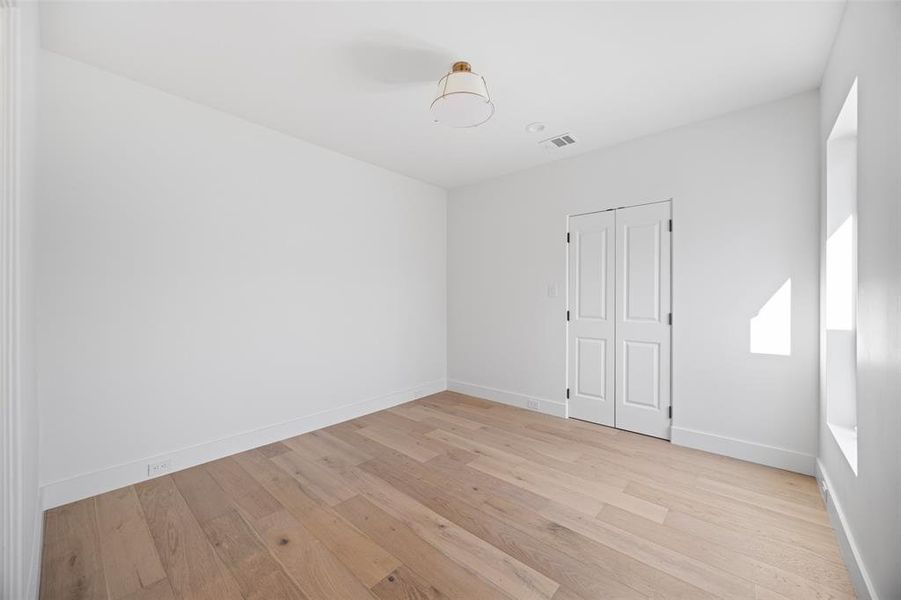 The primary suite offers a serene retreat with a spa-inspired bath featuring herringbone limestone floors, a freestanding soaking tub, glass-enclosed shower with Italian marble, designer lighting, and stained-grade oak cabinetry.