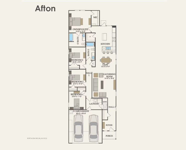 Available August 2025! The one-story Afton plan greets you with a front porch entry and true foyer space with room for an entry table. Then, the design opens to the spacious gathering room and cafe area with a breakfast bar for additional seating. The island kitchen boasts a walk-in pantry and flanks the private owner's suite with an attached bath and walk-in closet. Added storage closets throughout the home make this a functional floorplan for everyone.