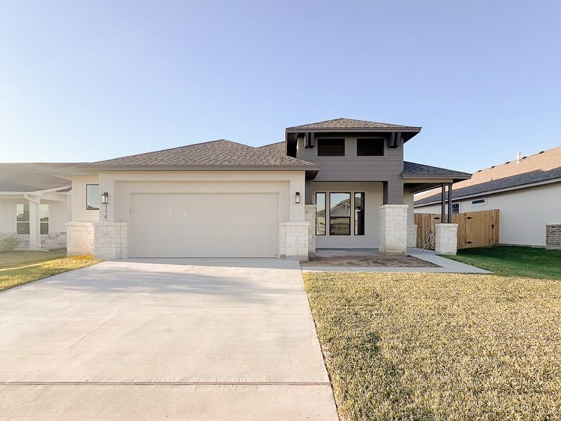 Discover the epitome of modern luxury with this exceptional newly built home by Steve Klein Custom Builder. This exquisite 4 bedroom 2 bath is located in the highly sought after TerraVista neighborhood. Thoughtfully designed and meticulously crafted, this Texas Modern Prairie floor plan offers an unparalleled blend of style and comfort that is sure to impress. Step into the heart of the home, where you can entertain with ease in the open family room, offering an eye-catching vaulted ceiling flooded with natural light and adorned with vinyl wood plank flooring. The spacious kitchen awaits, boasting custom cabinets, designer backsplash, quartz counter tops, oversized kitchen island for additional seating and built-in stainless-steel appliances, creating a culinary sanctuary that's as functional as it is beautiful. Retreat to the lavish primary suite, featuring a vaulted ceiling and large windows that bathe the space in sunlight. Pamper yourself in the spa-like primary bath, complete with a large Euro walk-in shower, double vanities, and a spacious walk-in closet with built-in shelves for optimal organization. Three additional bedrooms offer ample space that will allow you to create a relaxing environment for guests and family members to stay awhile, sharing a second full bath featuring an oversized vanity and tub/shower combo. The oversized covered backyard patio is perfect for al fresco dining or simply enjoying the outdoors. In addition, this property comes with a landscaping package, providing extra curb appeal. Other modern amenities include Smart Home package, fully fenced back yard, and energy-efficient vinyl Low-E windows, ensuring comfort and sustainability. Homeowners can expect peace and quite with the luxury of living in Victoria’s premier community with easy access to some of the best schools in the district and major shopping centers. Schedule an appointment today to check out all that this home has to offer!