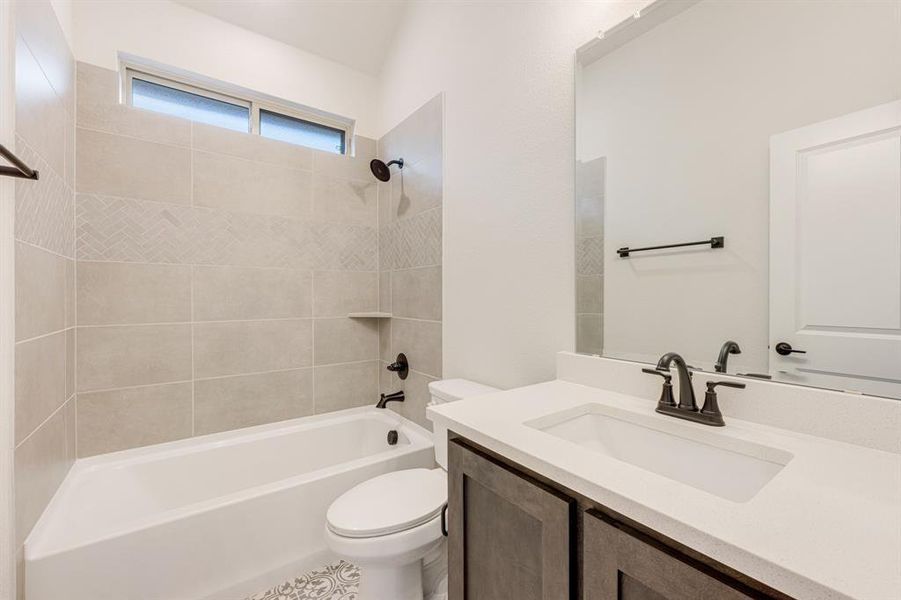 BRAND NEW & NEVER LIVED IN BEFORE! This inventory home is finished and Move-In Ready! Introducing the Primrose, a top Bloomfield design situated on a spacious interior lot, enhanced by a bricked front porch and a striking brick and stone facade that elevate its curb appeal. This thoughtfully crafted 3 bedroom, 2.5 bath home features a 3-car garage and welcomes you with a bold 8' Front Door that opens into a rotunda entry and sunlit open-concept living spaces. Inside, exotic Tile flooring spans the main areas, while soaring ceilings and expansive windows flood the home with natural light. A dramatic 18’ ceiling and a Stone-to-Ceiling Fireplace with a cedar mantel bring warmth and architectural depth to the Family Room. The Deluxe Kitchen is a showpiece with pendant lighting, under-cabinet illumination, upgraded Quartz countertops throughout, a Glass Pantry Door, custom backsplash, and rich custom cabinetry paired with all-electric stainless steel appliances, including double ovens and a wood vent hood with pot and pan drawers for optimal storage. The open layout flows effortlessly into the Dining Area, perfect for everyday living or entertaining, while the Study—framed by elegant Glass French Doors—offers quiet productivity. Vaulted ceilings and window seats add a cozy, refined touch, and the Primary Suite includes upgraded finishes, a spacious closet, and a luxurious bath with a drop-in deck mount tub. Functional touches such as a well-placed mud room, utility sink in the laundry, built-in blinds, and full gutters blend convenience with style. The extended covered patio invites outdoor enjoyment year-round. Located in the Villages of Walnut Grove with scenic trails nearby, this home offers a lifestyle defined by comfort, quality, and elevated design.