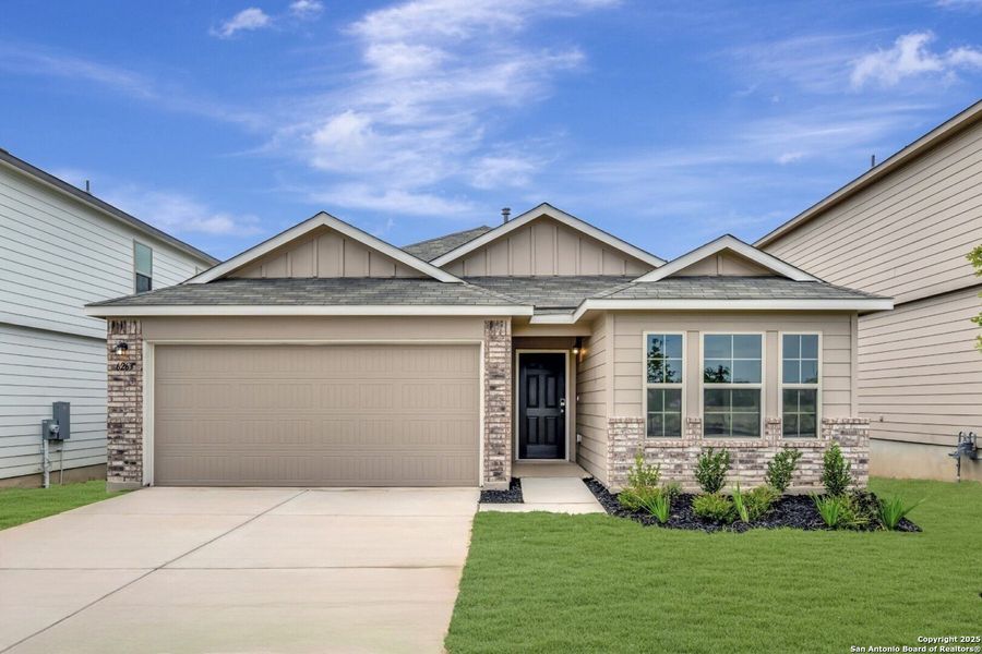 READY NOW Welcome to 6263 Desert Aloe, San Antonio, a stunning new construction home built by M/I Homes offering 1,687 square feet of thoughtfully designed living space. This charming home features the following: 3 bedrooms, including an owner's bedroom 2 full bathrooms Open-concept living space perfect for entertaining Quality construction with attention to detail This new construction home showcases exceptional craftsmanship throughout, with an emphasis on creating comfortable, functional spaces for everyday living. The open-concept design creates a natural flow between the kitchen and living areas, making it ideal for both family time and entertaining guests. The downstairs owner's bedroom provides convenience and privacy, featuring an en-suite bathroom designed for comfort. Two additional bedrooms upstairs offer ample space for family members, guests, or home office needs. Throughout the home, you'll find thoughtful design elements that enhance both aesthetics and functionality. The kitchen comes equipped with modern appliances and ample counter space for meal preparation. M/I Homes is known for their commitment to quality construction, and this home is no exception. Energy-efficient features help reduce utility costs while providing year-round comfort.