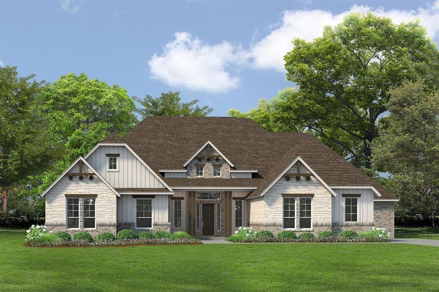 MLS# 21101588 - Built by Kindred Homes - Ready Now! ~ This beautifully designed one-story home offers 4 bedrooms, 3.5 bathrooms, and a 3-car garage—all thoughtfully laid out to balance style and function. From the welcoming covered front porch to the expansive open-concept living space, every detail is crafted for comfort and ease. The kitchen is a true centerpiece, featuring an oversized island with breakfast bar seating, generous cabinetry, and a spacious walk-in pantry. It flows effortlessly into the family room and dining nook, with views that extend to the large covered patio—perfect for indoor-outdoor entertaining. The private owner’s suite is tucked away at the rear of the home and includes a spa-like bath with dual vanities, a soaking tub, walk-in shower, and an oversized walk-in closet with direct access to the laundry room. Secondary bedrooms are well-sized with walk-in closets; two share a Jack-and-Jill bath, while the fourth bedroom includes its own en-suite—ideal for guests or multi-generational living. Additional highlights include a private study, media room, game room, and a convenient mudroom, all thoughtfully integrated into this flexible and functional layout.
