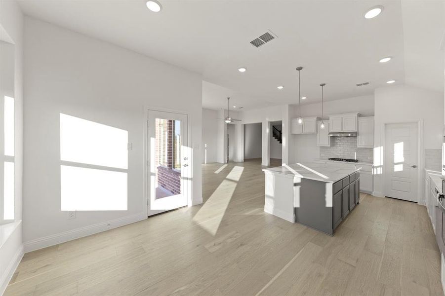 MLS# 20991289 - Built by Pacesetter Homes - Ready Now! ~ 2111 Hibiscus Lane blends classic design with modern comfort across a spacious two-story layout. From the moment you walk in, you're welcomed by warm engineered hardwood flooring that flows through the main living areas and private study-giving you a polished space to work or focus. Off the entry is a formal dining area, perfect for gatherings and holiday meals. The heart of the home is the expansive family room, which opens to a beautifully designed kitchen featuring white cabinetry with cove crown molding, a gray island with quartz countertops, and stainless steel built-in appliances including a microwave, oven, and gas cooktop with vent hood. Thoughtful details like a trash roll-out drawer, pot and pan storage, full-extension drawer guides, and a custom refrigerator cabinet add both convenience and style. The primary suite is tucked at the back of the home and feels like a true retreat, with a sitting area, cathedral ceiling, and a luxury bath that includes a garden tub, glass-enclosed tile shower, dual vanities, and a large walk-in closet. Two secondary bedrooms are located downstairs and share a full bath, while a fourth bedroom with its own bath and walk-in closet is upstairs-ideal for older kids or guests who want extra privacy. Upstairs also includes a large gameroom and a dedicated media room, giving everyone space to spread out, relax, or entertain. Outside, the covered back patio offers a great spot to grill or unwind in the evenings!