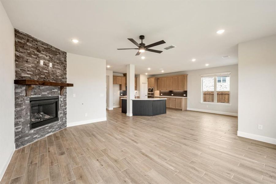 NEW! NEVER LIVED IN. Ready Now! Prepare to be impressed by Bloomfield's Dewberry II floor plan that offers an exceptional blend of comfort and elegance with 4 bedrooms, 3.5 baths, and a spacious 3-car garage. A beautiful all-brick facade sets the tone, further elevated by an 8' Front Door, cedar garage doors, and a charming front balcony that creates a third covered outdoor living space alongside the covered porch and an extended covered patio in back—ideal for both relaxation and entertaining. Inside, the open-concept layout is enhanced by Wood-look Tile floors that run throughout all common areas, while a striking Stone Fireplace adds warmth and character to the Family Room. The Deluxe Kitchen impresses with built-in stainless steel appliances, a gas cooktop, Quartz countertops, pot and pan drawers, a wood vent hood, and an intuitive flow that invites gathering. The Primary Suite offers a peaceful retreat with a walk-in closet and luxurious garden tub, while the upper level features not only expansive game and media rooms, but also 2 full baths to complement the secondary bedrooms. A dedicated Study provides flexible work-from-home space, and practical features like a tankless water heater, gutters, and a gas drop on the patio enhance everyday living. Situated on an interior lot in an amenity-filled community with parks, trails, and recreational spaces, this home is thoughtfully designed to elevate your lifestyle—visit Sonoma Verde today to make it yours!