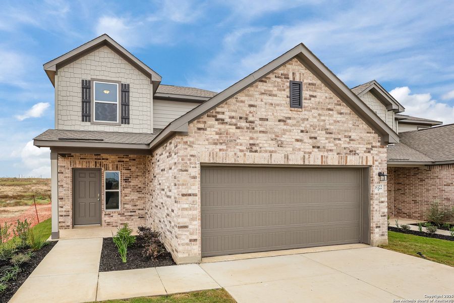 Welcome to your dream home! The King flooplan is a beautifully designed two-story home featuring soaring ceilings and an open-concept layout-perfect for entertaining and everyday living. The spacious kitchen boasts a large island overlooking the casual dining area and family room, ideal for gathering with family and friends. Enjoy the luxury of gas cooking, granite countertops, and 42" upper cabinets for ample storage. The private primary suite includes a spa-like bathroom with an oversized walk-in shower, dual tall vanities with elegant Marlana countertops, and a generous walk-in closet. Step outside to a covered patio and fully landscaped yard complete with a privacy fence, full sod, and an irrigation system-everything you need to enjoy outdoor living year-round. Schedule your tour today!