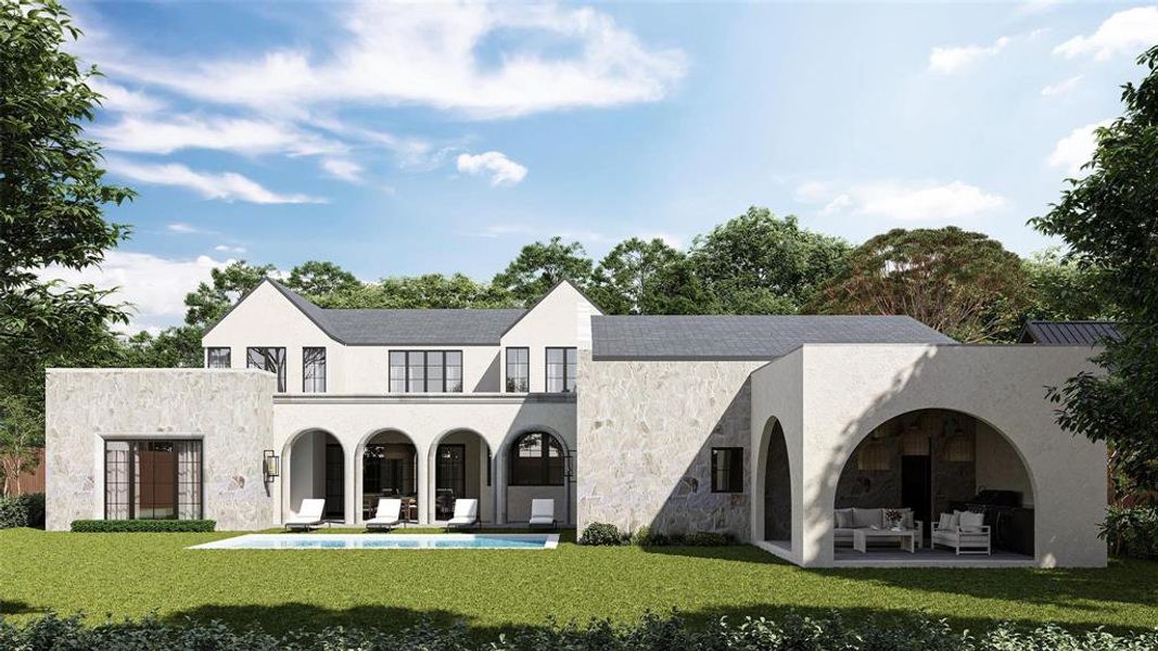 Situated in Preston Hollow, 6823 Norway Rd. is a custom luxury home by M&E Development, reflecting refined craftsmanship and enduring design. Blending timeless architecture with thoughtful modern living, this residence showcases balanced proportions and elevated finishes throughout. A striking limestone façade with graceful arches creates an elegant street presence. Inside, a dramatic two-story foyer with marble floors and an elegant staircase welcomes you into light-filled interiors designed for both everyday comfort and upscale entertaining. The main living area features vaulted, beam-accented ceilings and a statement fireplace, flowing effortlessly into the chef’s kitchen equipped with premium appliances, custom cabinetry, a scullery and a well-appointed butler’s pantry. The first-floor primary suite offers a private retreat with serene backyard views, a spa-inspired marble bath, and an expansive custom walk-in closet. A flexible downstairs room with a full bath provides versatility for a guest suite, office, or home gym. Upstairs, three en-suite bedrooms are complemented by a study nook and a generous game room, offering functional living for all stages of life. Outdoor living is enhanced by a covered loggia and summer kitchen, ideal for entertaining or quiet evenings at home. Additional highlights include a gated motor court, porte-cochère, and two garages, delivering both privacy and convenience.