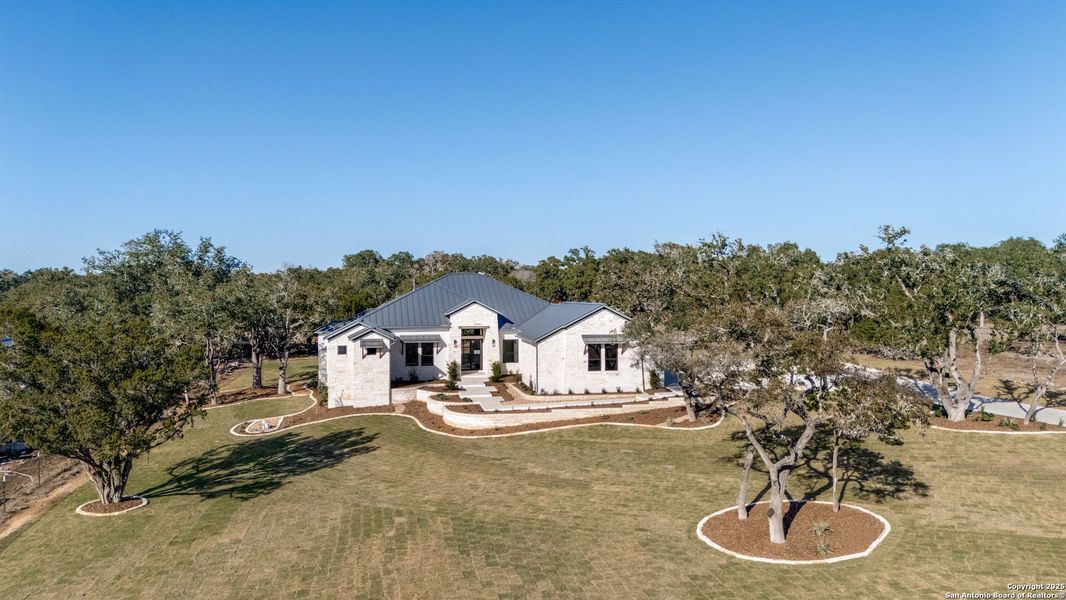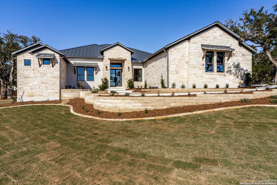 4.99% Fixed for Limited Time (Subject to approval) Located in the highly sought-after Stone Creek Ranch neighborhood, this beautiful new Sitterle Homes build offersoffer luxurious Hill Country living on a spacious 1.052-acre lot. This thoughtfully designed single-story home features three bedrooms, each with its own private en-suite bath, plus a dedicated office and a versatile game room. The open-concept layout includes a large living room with a fireplace, flowing into an island kitchen and separate dining room, ideal for gatherings and everyday living. Adjacent to the kitchen and dining areas, homeowners can enjoy a wine cellar and built-in desk area. The game room includes a full bath with access to the covered patio and outdoor kitchen, creating the perfect setup for indoor-outdoor entertaining. The primary suite serves as a serene retreat, complete with a garden tub, walk-in shower, dual vanities, and a spacious walk-in closet. Additional highlights include walk-in closets throughout, a laundry room with cabinet space and a sink, and a generous three-car garage. This exceptional new home combines thoughtful design, high-end finishes, and modern conveniences-all in one of the Hill Country's most desirable communities.