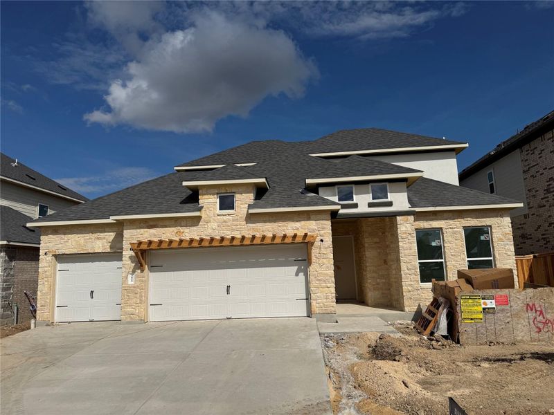 Situated in a welcoming neighborhood, this 1.5 story, 4 bed, 3.5 bath new home is a treasure waiting to be discovered, offering a comfortable and modern living experience. As you step inside, you'll be greeted by an inviting open floorplan that seamlessly connects the kitchen, living, and dining areas. The gourmet kitchen is a culinary haven with sleek quartz countertops, ample cabinet space, built-in stainless-steel appliances including a gas cooktop, making it a perfect spot to unleash your inner chef. The owner's bedroom is a serene retreat featuring a spacious layout, a bay window, and an en-suite deluxe bathroom with dual vanities, a soaking tub, and a separate shower for added convenience. The guest suite features a walk-in shower, enhancing the home's functionality. The 2 additional bedrooms provide plenty of space for family members or guests. With a total size of 2,874 square feet, there's more than enough room for everyone to find their own cozy corner. This home also includes a media room, providing a perfect space for entertainment and relaxation. Whether you're hosting a barbecue or just enjoying a quiet morning cup of coffee, the extended covered patio in the backyard offers a charming outdoor space for relaxation and entertainment. The gas line for an outdoor grill adds convenience for outdoor cooking.