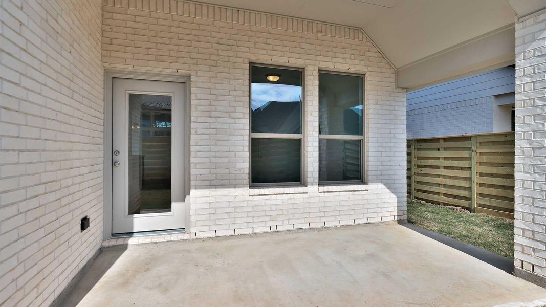 Porch opens to entry with 10-foot ceiling, utility room and mud room. Open family room with three large windows extends to the kitchen and dining area. Island kitchen offers built-in seating space, 5-burner gas cooktop and corner walk-in pantry. Secluded primary suite features large bedroom, dual vanities, glass enclosed shower and a walk-in closet. Secondary bedrooms with walk-in closets, additional bathrooms and two linen closets complete this design. Covered backyard patio. Two-car garage.