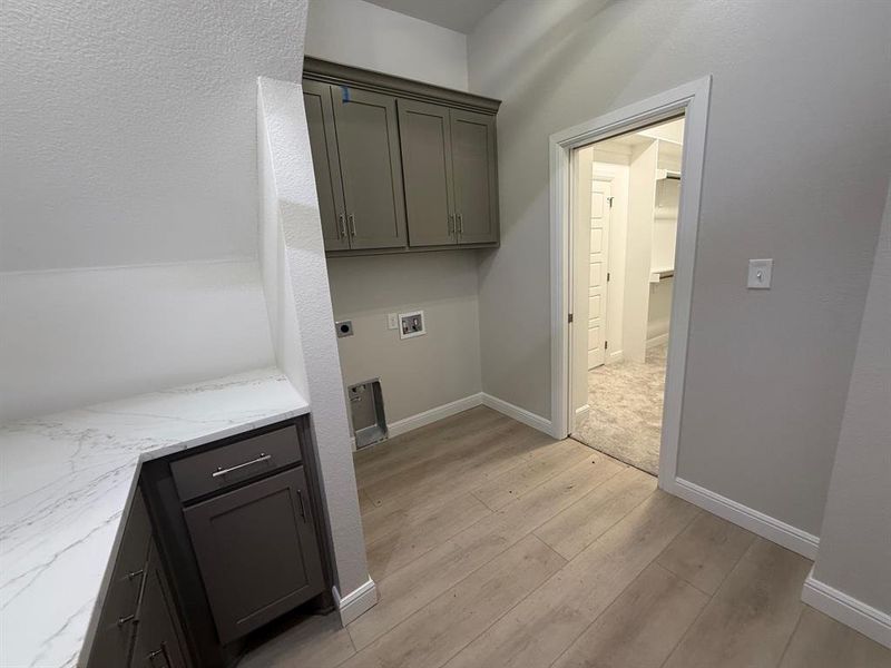 Enjoy the stunning floor-to-ceiling stone woodburning fireplace with a stone hearth and well-thought-out switched ventilation for improved airflow. The primary ensuite features large separate vanities with gorgeous Dumont Quartzite countertops, two stacks of drawers each, and a linen cabinet. The oversized walk-in shower includes multiple shower heads, including a rain head, and the large primary closet offers ample hanging space, shoe and boot shelves, and direct access to the laundry room. Thoughtful storage solutions are included throughout such as broom and linen closets, seasonal closet, a built-in mud bench with large cubbies and walk-in attic. Upstairs, the wide staircase leads to a large bonus room over the garage for extra hangout space. The oversized two-car garage has a storage area, an 8-foot garage door, and a Wi-Fi-enabled garage door opener.