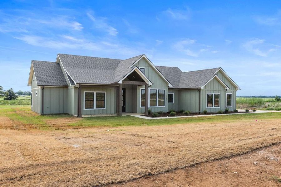 Don’t miss your opportunity to own this stunning new construction home situated on a spacious 1-acre lot with NO HOA OR CITY TAXES! Thoughtfully designed for both style and energy efficiency, this home will feature full spray foam insulation for year-round comfort and lower utility costs. With 4 generously sized bedrooms, 2.5 bathrooms, and a dedicated home office, the layout offers the perfect balance of function and flexibility. The open-concept living space is anchored by gorgeous wood-look tile flooring and a modern kitchen complete with propane gas range, sleek quartz countertops, an oversized center island, and soft-close cabinetry. The private primary retreat is tucked away from the secondary bedrooms and boasts serene views of the backyard, dual vanities, a freestanding soaking tub, a large walk-in shower, and a massive walk-in closet with convenient direct access to the laundry room. Outside, there is an oversized covered patio, ideal for relaxing or entertaining while overlooking your expansive backyard. Irrigation will be installed, keeping your lawn lush is simple and there’s still plenty of room to add a pool, workshop, or park your RV or boat. This home offers the perfect blend of comfort, craftsmanship, and countryside charm, all just a short drive from town. Schedule your tour today and start planning your move!