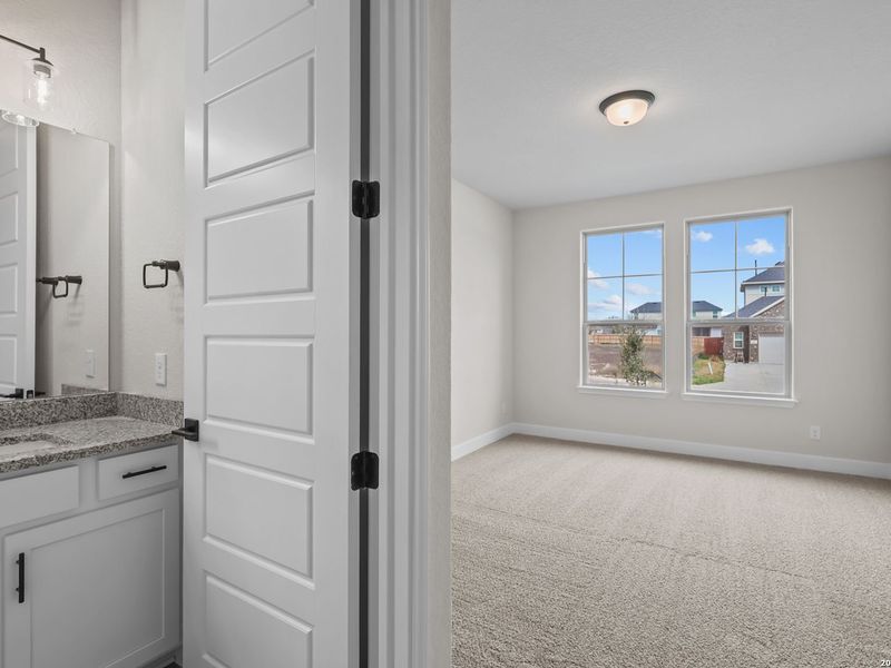 Welcome to The Belmont, a thoughtfully designed open-concept home that blends modern convenience with versatile living spaces. As you enter, you are greeted by a foyer that flows seamlessly into the heart of the home. The open concept layout features a generously sized family room and kitchen, ideal for gatherings or entertaining. The primary suite is conveniently located on the main floor, offering a private retreat complete with a luxurious bathroom and a walk-in closet. On the second floor, you'll find a versatile loft area, along with two additional bedrooms providing ample room for family or guests. The shared bathroom enhances functionality.