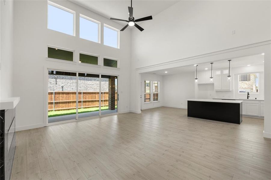 MLS# 20979843- Built by First Texas Homes - Ready Now! ~ Immerse yourself in modern luxury in this stunning home with an open concept design, perfect for entertaining and fostering togetherness. Cozy up to the warmth of a linear fireplace, the centerpiece of a spacious living area! Prepare culinary masterpieces in a gourmet kitchen equipped with double ovens and a butler's pantry, ideal for extra storage and serving convenience. Luxury vinyl flooring throughout the common areas adds a touch of sophisticated elegance and easy maintenance.