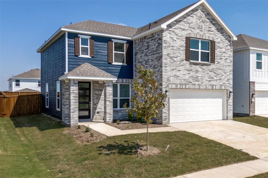 This 2-story home features a 2-car garage, a den with doors ideal for privacy, and a study room perfect for work or hobbies. The upgraded kitchen boasts a Moen sleek faucet, stainless steel Whirlpool appliances, and a modern kitchen sink. The primary bath offers a fiberglass shower with clear enclosure and stylish tile surround, Moen fixtures, and quartz countertops. Outdoors, enjoy the convenience of an automatic sprinkler system and an extended patio slab. Decorative touches include 2-inch faux wood cordless blinds and duplex receptacles with USB A and C ports. Ask sales counselor about closing cost and rate buy down opportunities.