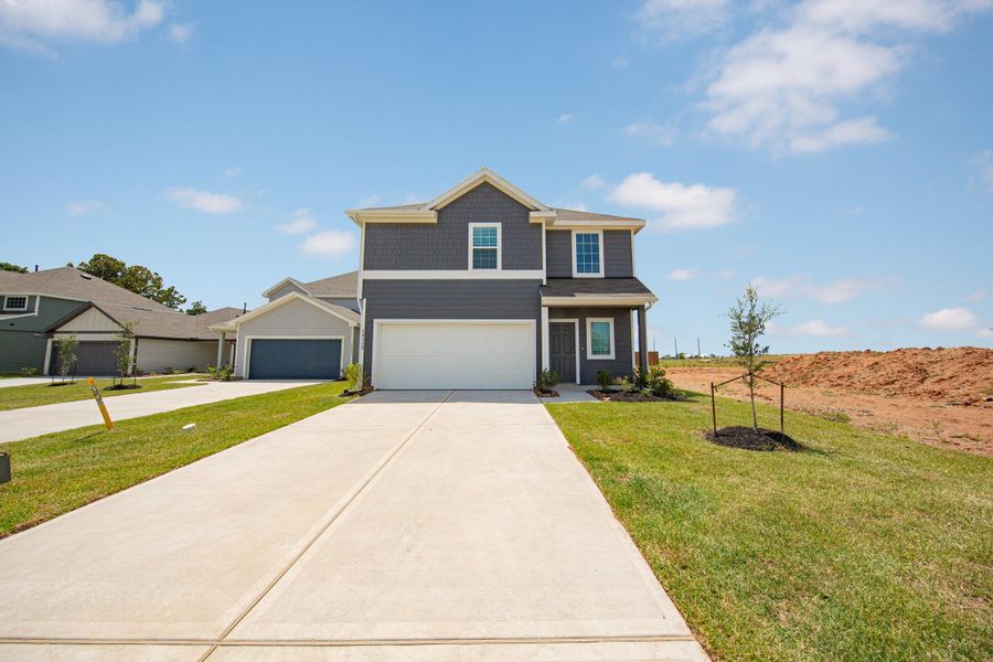 Convenience is key in Ridgeland Hills, a new home community that offers easy access on and off I-45. The Lakeland plan is a 2-story home that comes standard with 3 bedrooms, 2.5 baths, and features a 1st floor primary suite with a sizable walk-in closet plus an upstairs game room. Upgrades include - Bay window at primary suite, Box window at dining space, Granite countertops in primary bathroom, Granite countertops in secondary bathrooms, Sod front and back, Stainless steel appliances.