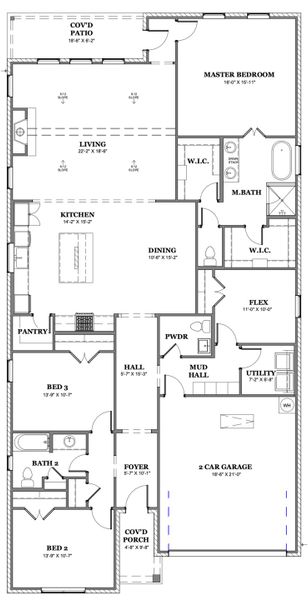 - Luxury vinyl wood-style flooring in entry, living, kitchen, flex, powder, and hallways