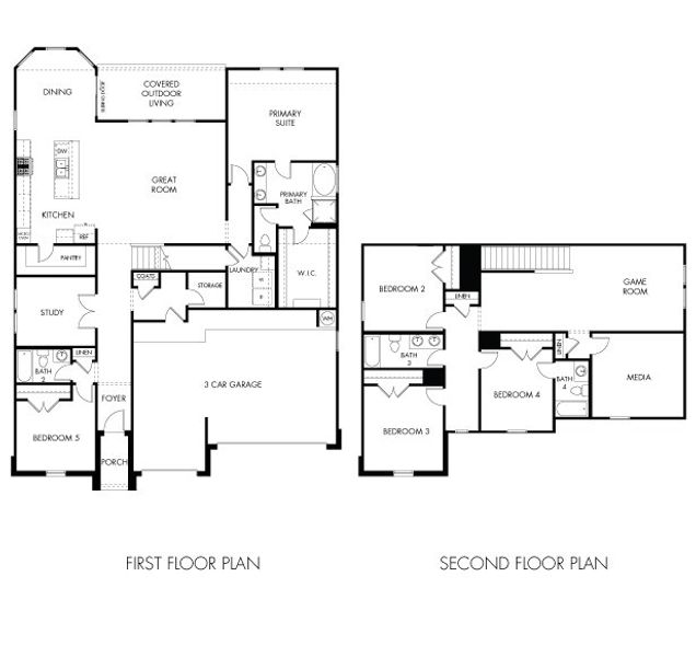 Unwind in the Revere's primary suite or private study, while the kids enjoy the media and game rooms upstairs. Gray cabinets with marble-look white quartz countertops, warm beige EVP flooring, and multi-tone taupe carpet in our Radiant package.