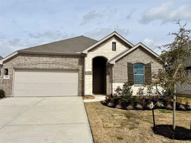 Welcome to Westland Ranch in League City, TX—a stunning master-planned community where modern living meets rustic charm, featuring the Hayloft amenity center with a resort-style pool, playground, courts, and scenic trails! Conveniently located minutes from Galveston, Space Center Houston & Kemah and zoned to top Clear Creek ISD. Welcome to this NEW construction Mahogany plan with 3 beds, 2 baths & 2-car garage. Featuring an open layout, the kitchen flows effortlessly into the living and dining area, making it perfect for entertaining. The kitchen comes with stainless steel appliances, custom cabinets & sleek omega stone countertops. The main living areas feature laminate flooring, with tile in the wet areas. The luxurious primary suite offers a drop-in tub, walk-in shower, spacious walk-in closet & dual vanities. Enjoy the outdoors with your backyard oasis, featuring sod, a sprinkler system & covered patio. This home is move-in ready!