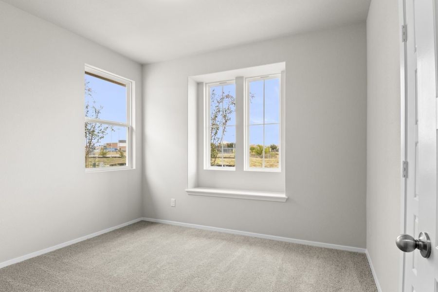 This one-story new construction home at 2963 Winding Road in Kyle’s Casetta Ranch combines charm and function with features such as its rear covered patio where you can wind down at the end of the day, an alley access lot, and a two-car detached garage. The home’s interior showcases wood-look vinyl flooring throughout the main living areas, white cabinets throughout, and abundant natural lighting, including in the bathrooms. Inside the kitchen, you’ll find 42-inch upper cabinets, 3 cm granite countertops, and a pantry. The bathrooms all have raised bathroom vanities with Silestone countertops for a more luxurious and comfortable feel. Retreat to the primary suite where the walk-in shower and walk-in closet will make the everyday routine a little easier.