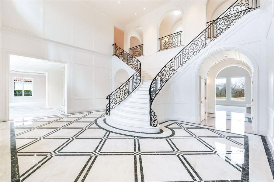 This extraordinary Neoclassical-inspired estate is poised to become one of North Texas’s most iconic luxury residences. Thoughtfully designed by Lloyd Lumpkins Architects and meticulously built by Sharif-Munir Custom Homes, the property seamlessly blends timeless European elegance with Mediterranean sophistication. Set on a premier lot backing to Hole 3 of the Arnold Palmer Signature Course, the home spans over 13,000 square feet, with an additional 5,000+ square feet in a fully finished basement, thoughtfully crafted for refined living, lavish entertaining, and the most discerning lifestyle. A dramatic entry hall welcomes you into a grand interior anchored by a gallery with groin-vaulted ceilings. Among the home’s planned features are a Gilded Age-inspired sunroom with soaring windows, a private gym that opens to a covered patio with automatic drop-down screens, a full sauna, an oversized game room, and a grand media room pre-wired for speakers. The expansive living spaces are both elegant and comfortable, centered around a chef’s kitchen equipped with top-tier appliances, a secondary spice kitchen, and a spacious butler’s pantry. Designed with flexibility and privacy in mind, the home offers seven bedrooms and eleven bathrooms, including a fully equipped multi-generational suite with a separate entrance. Outdoor living will be nothing short of spectacular, featuring a large covered patio and upper balcony, both with automatic screens, alongside a summer kitchen perfect for year-round enjoyment. A private drive-down ramp leads to a six-car basement garage with a dedicated storage room. The property also includes smart home technology. Located within the exclusive, guard-gated Wimberly Place, Allen’s only neighborhood of its kind. This property doesn’t just offer a place to live, it offers a way to live.