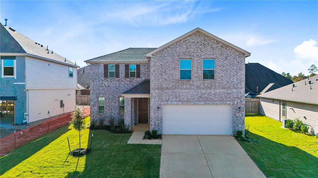 KB HOME NEW CONSTRUCTION - Welcome to 25507 Alpine Switchback Drive, a beautifully appointed two-story home in the desirable Breckenridge Forest community, zoned to Spring ISD! This spacious home features 4 bedrooms, 2.5 baths, and an attached 2-car garage. Step inside to find an open and functional layout with a flex room perfect for a formal dining room, plus a large game room upstairs for added living space. The kitchen showcases Silestone countertops, an added breakfast bar, stainless steel Whirlpool appliances, and rich 42" Woodmont cabinets. The primary suite offers a private retreat with dual sinks and a generous walk-in closet, while two of the secondary bedrooms also feature walk-in closets for ample storage. Additional highlights include an 8' entry door with SmartKey hardware, 2" wood blinds, exterior lantern lighting, front gutters, and a rear patio slab—perfect for outdoor relaxation. Don’t miss your chance to own this stunning home—schedule your private showing today!