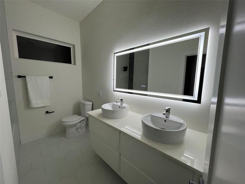 Welcome to your dream home! This beautifully crafted 2025 New Construction offers the perfect blend of modern style, functionality, and privacy. Featuring 3 bedrooms, 2.5 bathrooms, and contemporary finishes throughout, this home is designed to impress. A private metal gate welcomes you in, adding both security and exclusivity. Inside, the open-concept living area features soaring 20-foot ceilings and an elegant electric fireplace in the primary suite, creating a warm and inviting space. The chef-inspired kitchen showcases a stunning quartz waterfall island, electric range, modern vent hood, and dedicated dining area—perfect for entertaining. Step outside to the covered patio with a ceiling fan, overlooking a spacious backyard ideal for relaxing or hosting guests. Upstairs, the luxurious primary suite features its own electric fireplace and private balcony, plus a walk-in closet and spa-like bath with a double vanity with LED lighting, a walk-in shower, and a standalone soaking tub. Two additional bedrooms and a full bathroom complete the second floor.