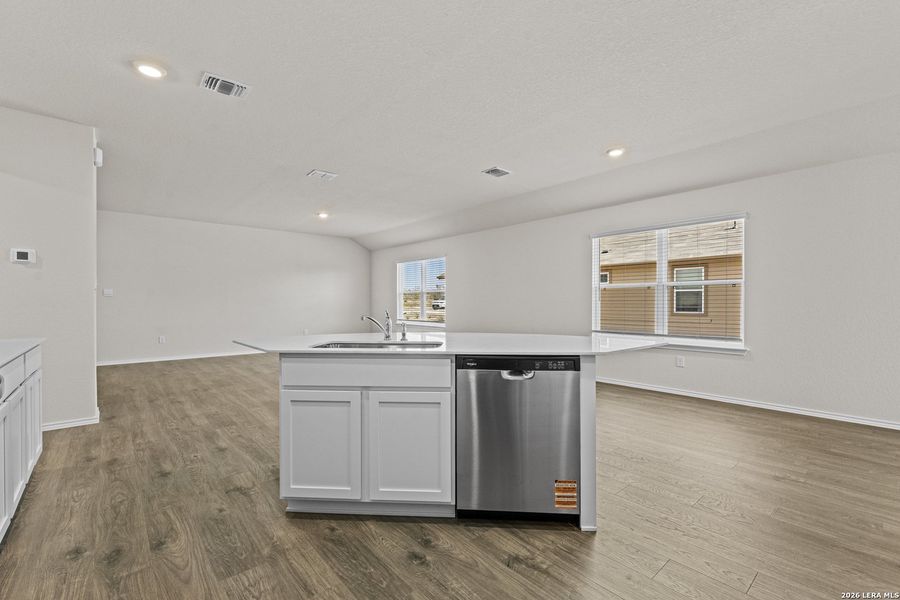 Welcome to The Knight, our largest single-story home offered at High Garden in Comfort, TX. Featuring 4 bedrooms, 2 bathrooms, 2-car garage and 1901 square feet of living space, this floor plan is sure to turn heads. Spacious, comfortable living greets you at the door with a long foyer leading to a decorative wall nook and a grand, open concept living room, kitchen and dining area. The kitchen is complete with beautiful quartz countertops, stainless steel appliances, classic white subway tile backsplash, and an oversized kitchen island with a deep single basin sink. Your blended living room and dining area feature luxury hard surface flooring and plenty of windows, creating a light and bright space for living and entertaining. The private main bedroom is located at the back of the home and features a large, relaxing ensuite bathroom complete with a separate tub and walk-in shower, dual vanities, a water closet, and spacious walk-in closet. All secondary bedrooms offer quality carpeted floors and a closet. These rooms are versatile! Use them as bedrooms, offices, work out rooms or other bonus spaces. Additional features include tall 9-foot ceilings, 2-inch faux wood blinds throughout the home, ceramic tile in the bathrooms and utility room, and pre-plumb for water softener loop. You'll enjoy added security in your new home with our Home is Connected features. Using one central hub that talks to all the devices in your home, you can control the lights, thermostat and locks, all from your cellular device. *Seller is willing to assist with closing costs or a rate buy-down through preferred lender with an acceptable offer. *