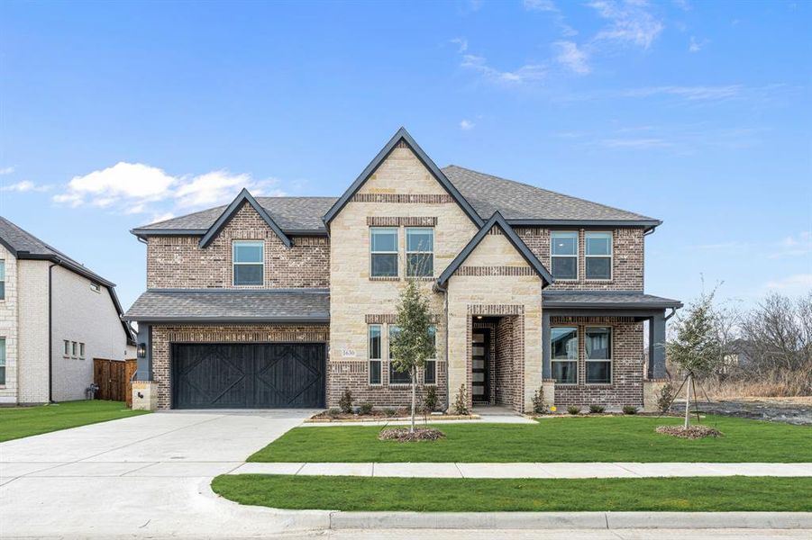 NEW! NEVER LIVED IN. Available for Immediate Move-In. Step into Bloomfield’s beautifully crafted Bellflower II, a spacious two-story home offering 4 large bedrooms, 3.5 baths, an elegant formal dining room, private study, and generous upstairs game and media rooms—perfect for entertaining or everyday living. This home showcases a brick and stone exterior and features a covered front porch, porte cochere, and 2-car garage with cedar doors. Soaring 18’ ceilings in the family room create a dramatic focal point, complemented by second-story windows and a warm, central fireplace. At the heart of the home, the Deluxe Kitchen boasts custom cabinetry, built-in stainless steel appliances, a wrap island, under-cabinet lighting, and cabinetry and countertops extending into the breakfast area—all contributing to both form and function. The secluded Primary Suite provides a luxurious retreat with a spa-like bath that includes separate vanities, a large walk-in shower, and an oversized closet with direct access to the laundry room. Upstairs you'll find a jack-and-jill bath connecting two bedrooms and a private suite for guests or older kids. The upstairs game room includes an open railing overlook, creating a bright, connected feel between floors. Don't forget about the media room off of the game room for a second entertaining space or a dedicated home theater. Other thoughtful upgrades include a tankless water heater, an 8’ front door, gas stub on the covered patio, and energy-efficient features throughout. Located in the desirable Sonoma Verde community of Rockwall, this home blends timeless elegance with modern upgrades—ready to welcome you home.