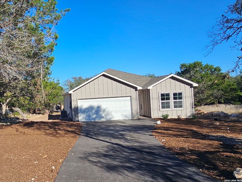 Be the very first to own this stunning brand-new home in the highly sought-after Rivermont community! Move-in ready in March, this thoughtfully designed single-story residence offers modern comfort, quality craftsmanship, and effortless living. This open-concept floor plan delivers seamless flow between the kitchen, dining, and living areas - ideal for both everyday living and entertaining. The spacious kitchen features premium finishes, abundant cabinetry, and generous counter space, blending style and functionality. What truly sets this home apart is the rare opportunity to enjoy brand-new construction within an established neighborhood filled with mature trees and natural beauty. Unlike many new developments with sparse landscaping and tight spacing, Rivermont offers towering trees, character, and a peaceful Hill Country setting that simply can't be replicated in a typical new subdivision. Residents enjoy private HOA access to the Guadalupe River park, along with two additional HOA parks featuring pools and playgrounds, creating a lifestyle that blends recreation, relaxation, and community. Located with convenient access to Spring Branch, Canyon Lake, New Braunfels, and San Antonio - and within an excellent school district - this home offers the best of Hill Country living. Secure a brand-new home without sacrificing the charm and charm of an established community - and be ready to move in this Month!