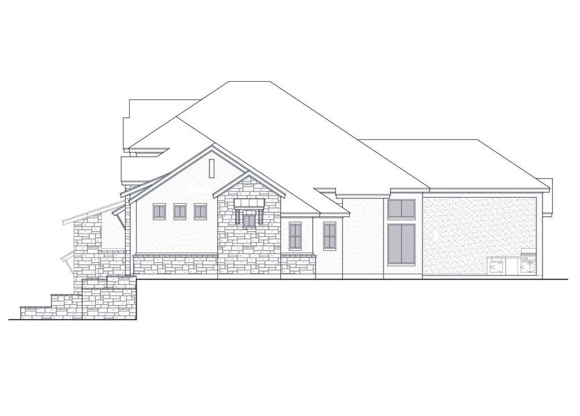 Perfect for entertaining, the great room features an elegant full cocktail and wine bar—bringing a touch of glamour and fun to every gathering. The adjacent dining room opens to a covered outdoor living space complete with a second outdoor kitchen, ideal for Hill Country evenings. The gourmet interior kitchen is a chef’s dream with JennAir appliances, built-in fridge and freezer, ceiling-height cabinetry with glass accents, interior lighting, and a pot filler for added luxury.